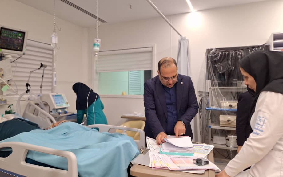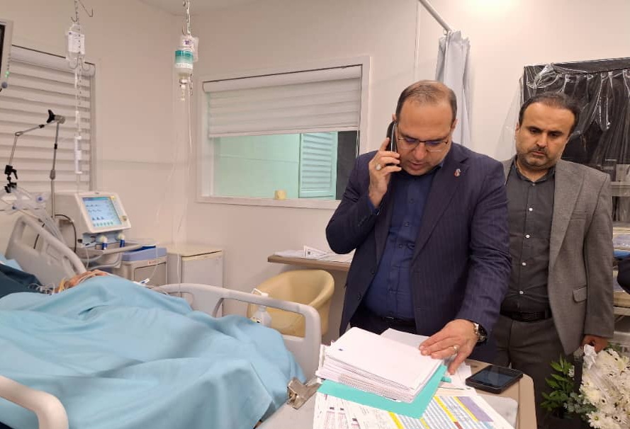 عیادت رئیس دانشگاه علوم پزشکی ایران از صابر کاظمی در بیمارستان پیامبران