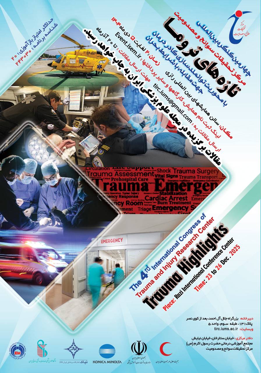 چهارمین کنگره بین‌المللی تازه‌های تروما به همت مرکز تحقیقات سوانح و مصدومیت دانشگاه علوم پزشکی ایران برگزار می‌شود و دارای ۲۰ امتیاز بازآموزی برای گروه‌های گسترده‌ای از پزشکان، پرستاران و فعالان حوزه تروما و فوریت‌های پزشکی است.