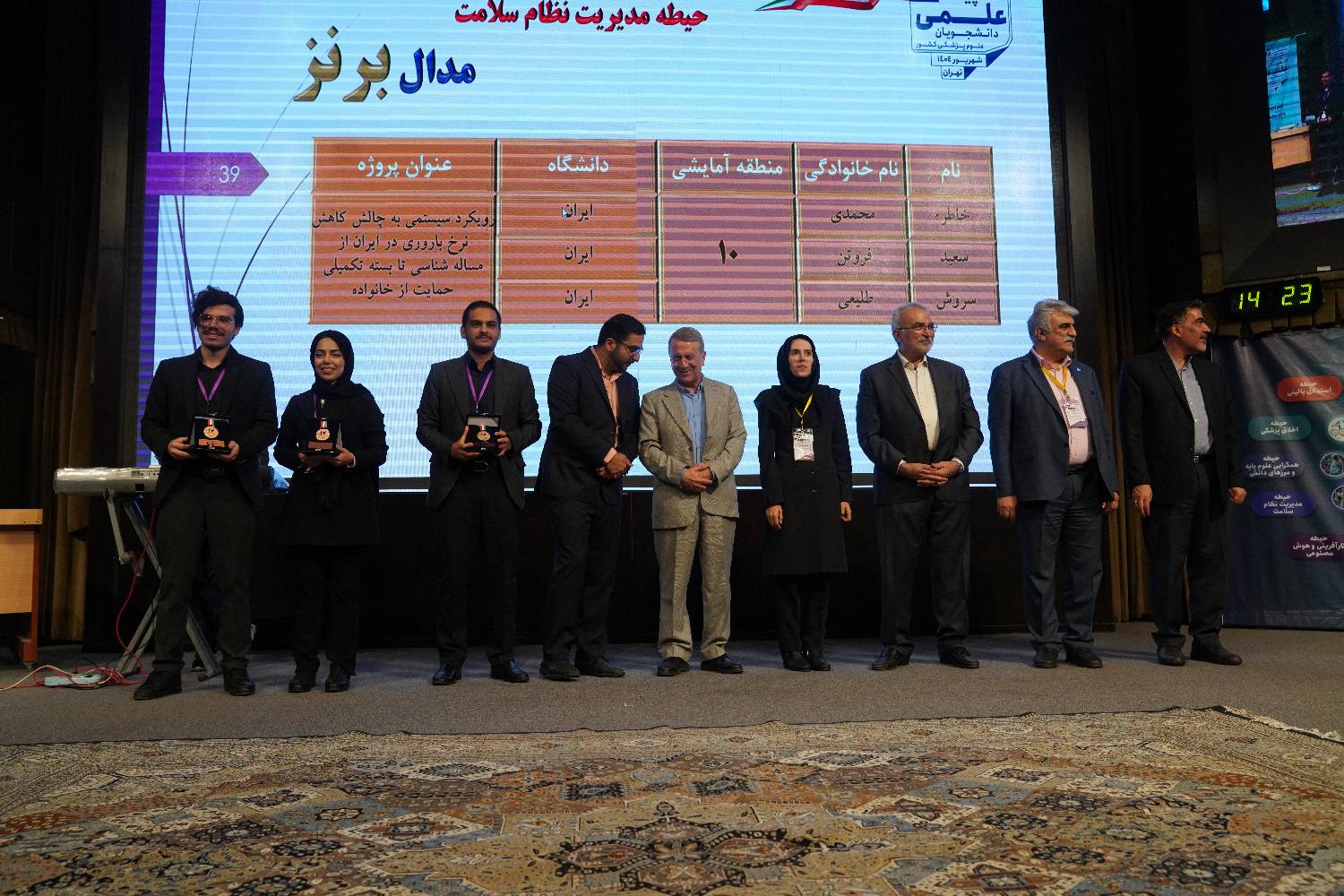 خاطره محمدی، سروش طلیعی و سعید فروتن دیگر گروه شرکت کننده از دانشگاه علوم پزشکی ایران در حیطه «مدیریت نظام سلامت و آموزش» نیز از هفدهمین المپیاد علمی دانشجویان دانشگاه­های علوم پزشکی کشور بی نصیب نماندند و مدال برنز گروهی را کسب کردند.
